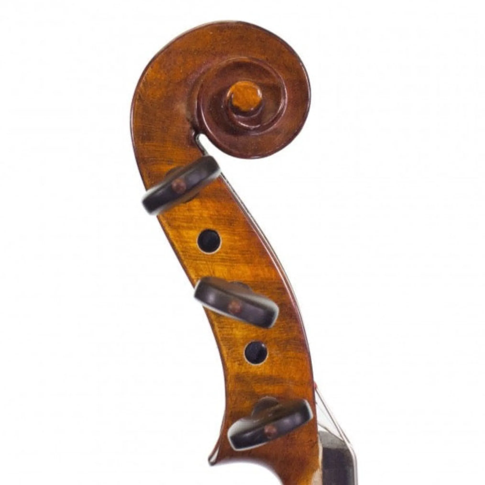 The output jack is built into the back, which is crafted to accommodate the added weight and material. In its position at the violin’s corner block and the back, the jack is easily accessed and allows the patch cable to be dressed away out of sight and out of the player’s way. The player’s bow arm is free to move unimpeded, and the instrument’s acoustic sound is unaffected. The Realist Violin’s volume control, integrated into the treble-side rib, is ingeniously camouflaged in the color of the violin’s varnish.