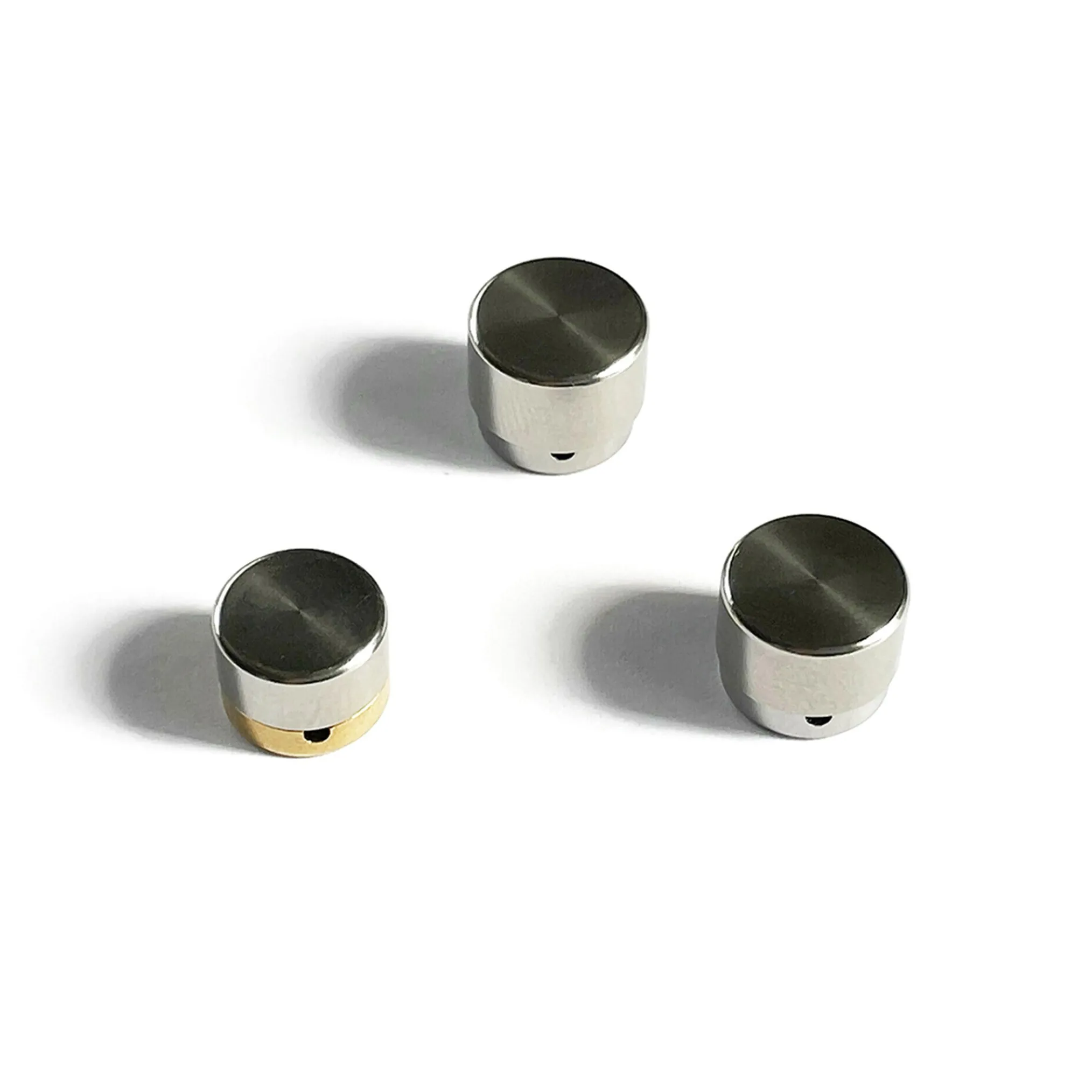 Their patent-pending design features fully interchangeable tops and bottoms, allowing incremental weights ranging from 4.7 to 7.3 grams. By balancing most of the weight towards the top of the string, these clamps control wolf tones more effectively than traditional “wolf eliminators.” The brass and two different types of stainless steel bottoms offer three choices for each of the three sizes of top (nine combinations in total). Attaching the buttons to the G or C string allow many frequency options to control wolf tones and manage an instrument’s tone and response.