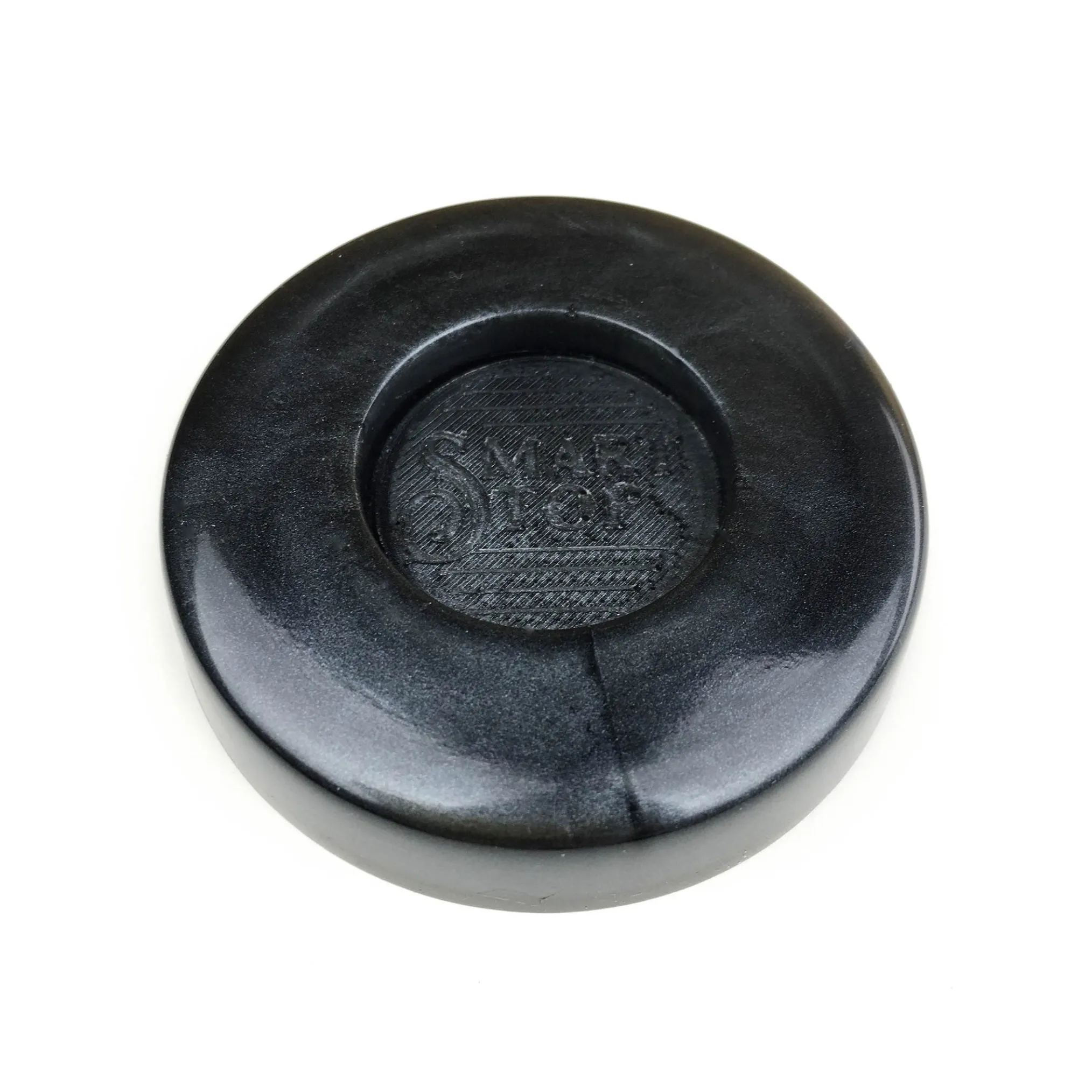 SmartStop compact at a little over 2.5″diameter and about .75″ thick.