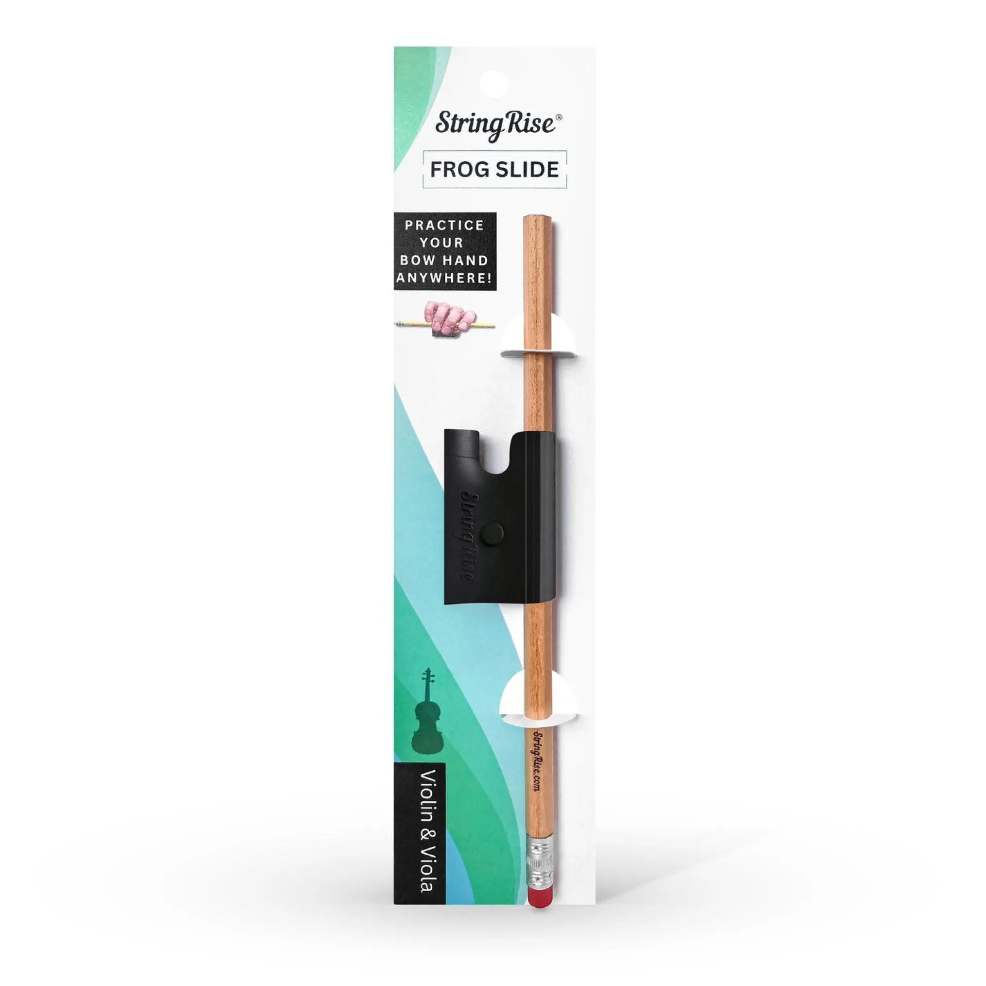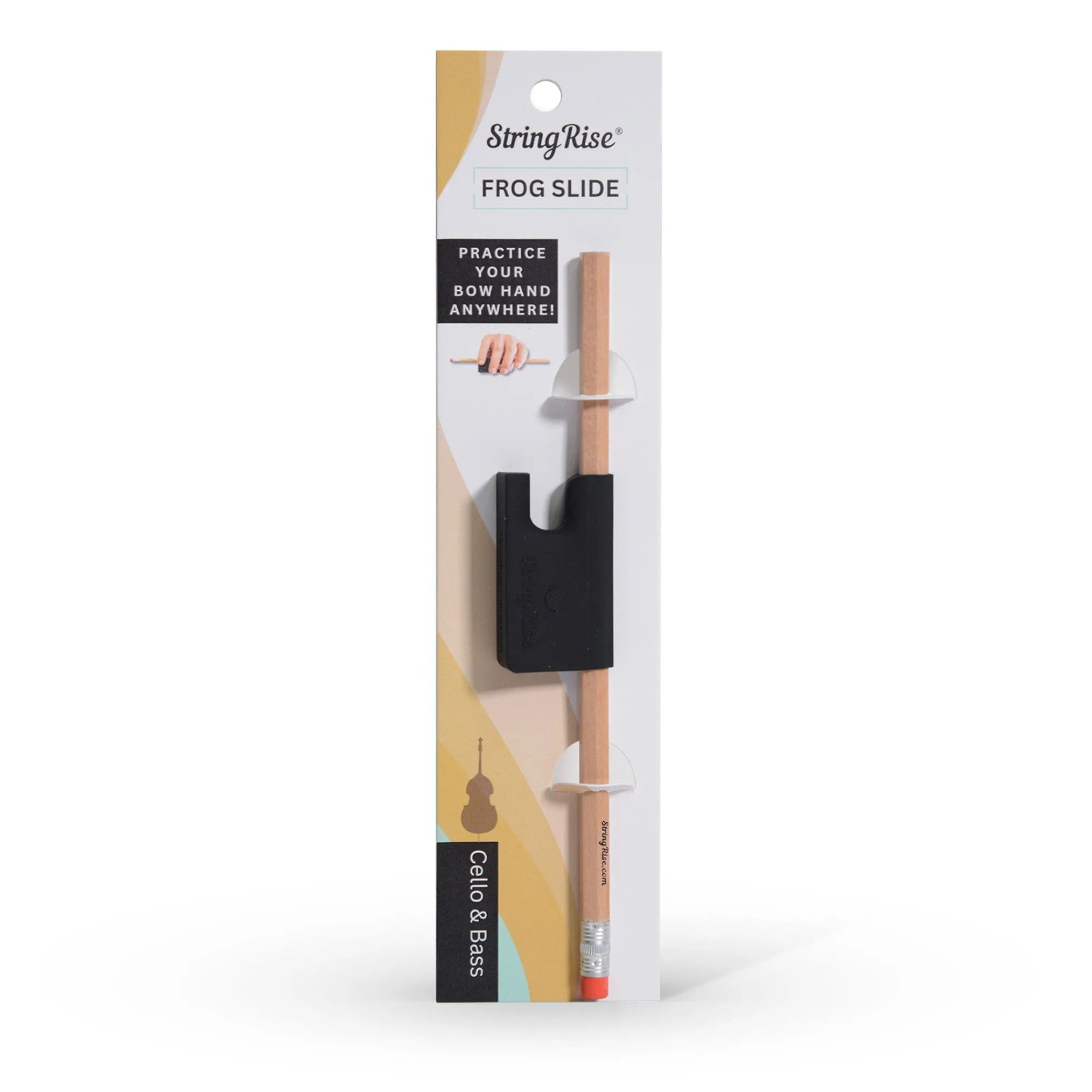 The StringRise Frog Slide can be easily attached to a pencil or dowel rod, allowing for convenient and enjoyable practice of proper bow hand technique. Available in both Violin/Viola and Cello/French Bass sizes, each Frog Slide comes with a standard hexagonal pencil and is constructed from durable silicone material.