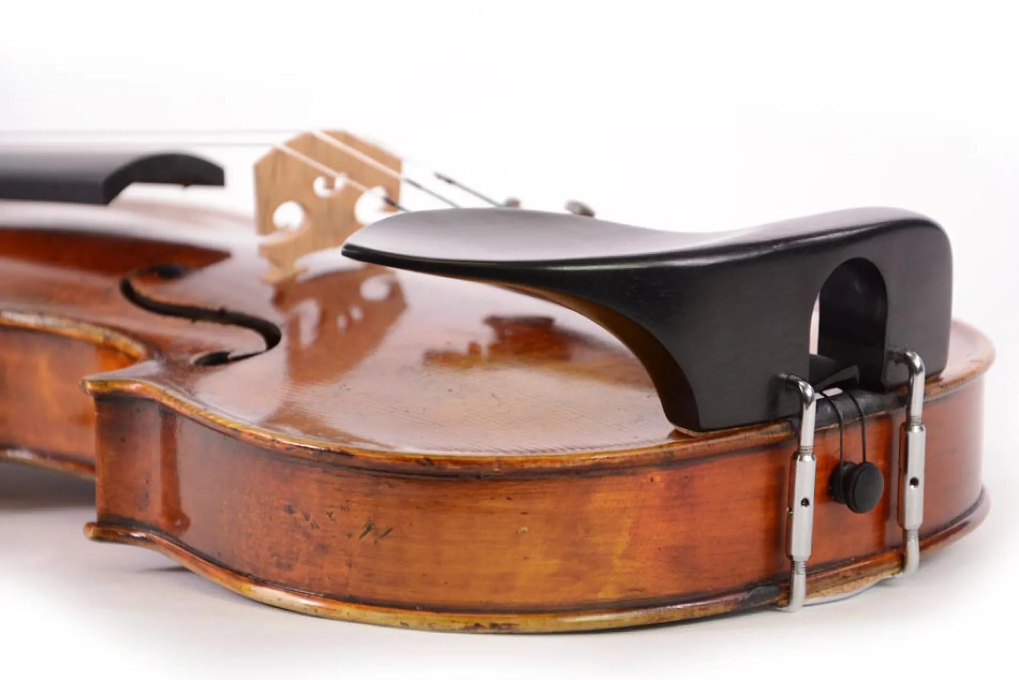 The Guarneri model is a center mounted chinrest that attaches to the instrument with the usual chin rest key (or paper clip if necessary). No special tools are required.
