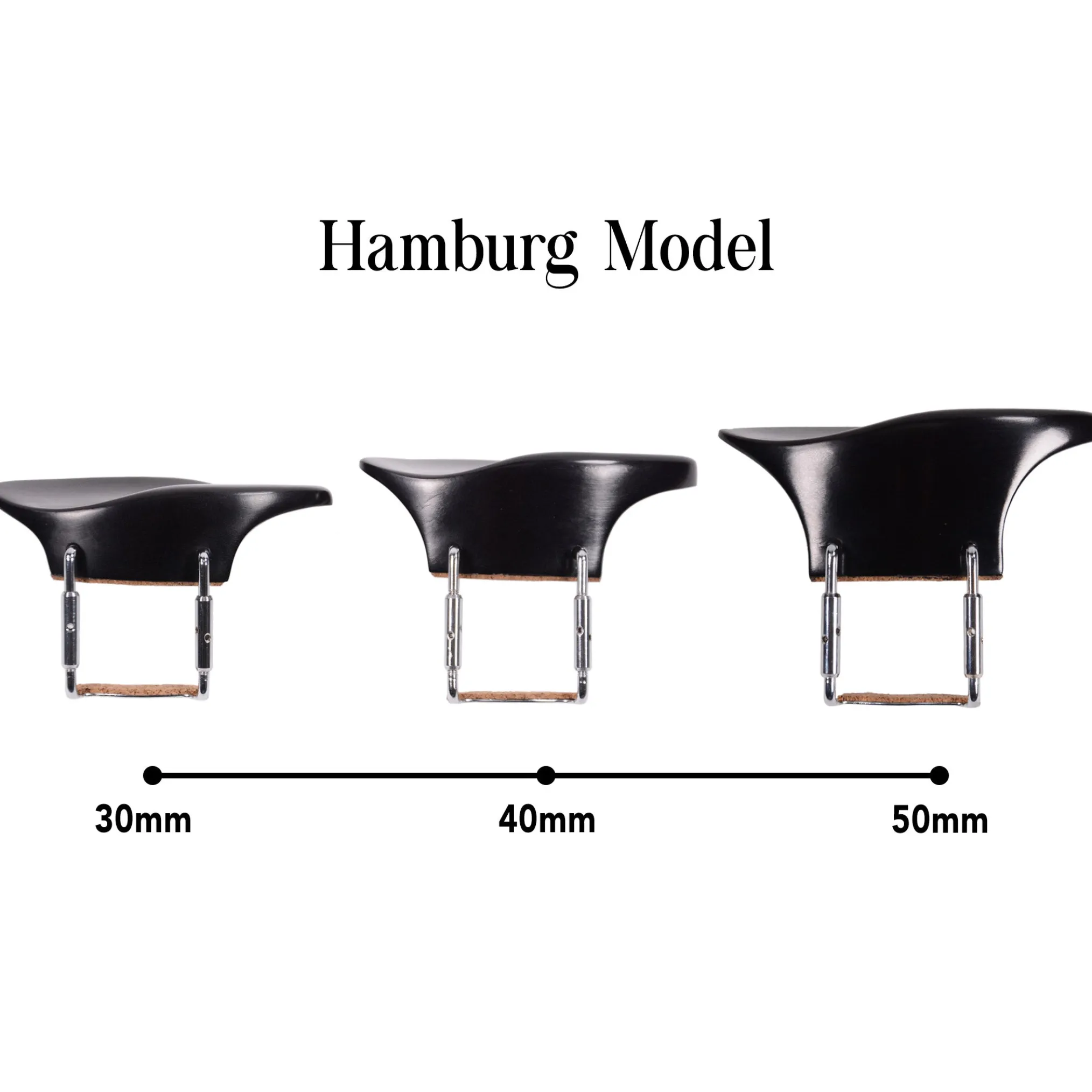 The Hamburg model chinrest is a medium sized violin chinrest with a slightly deeper scoop, that mounts next to the tailpiece with a lip that extends over it.The scoop of the chinrest is very comfortable and elegant, and the extra tall version meets players where they are at. No more clinching. No more lifting shoulders.