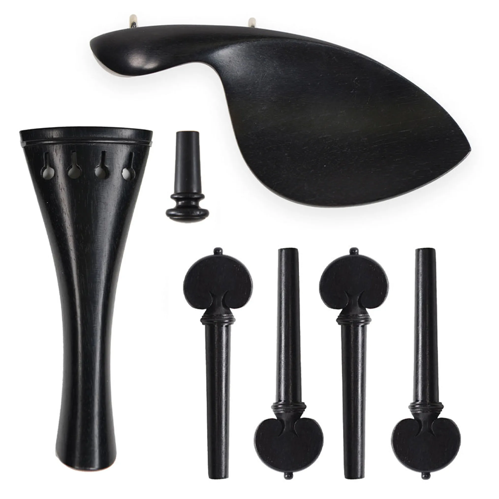 This Supreme Heart Ebony Violin Fittings Set is assembled with handcrafted fittings made in India.