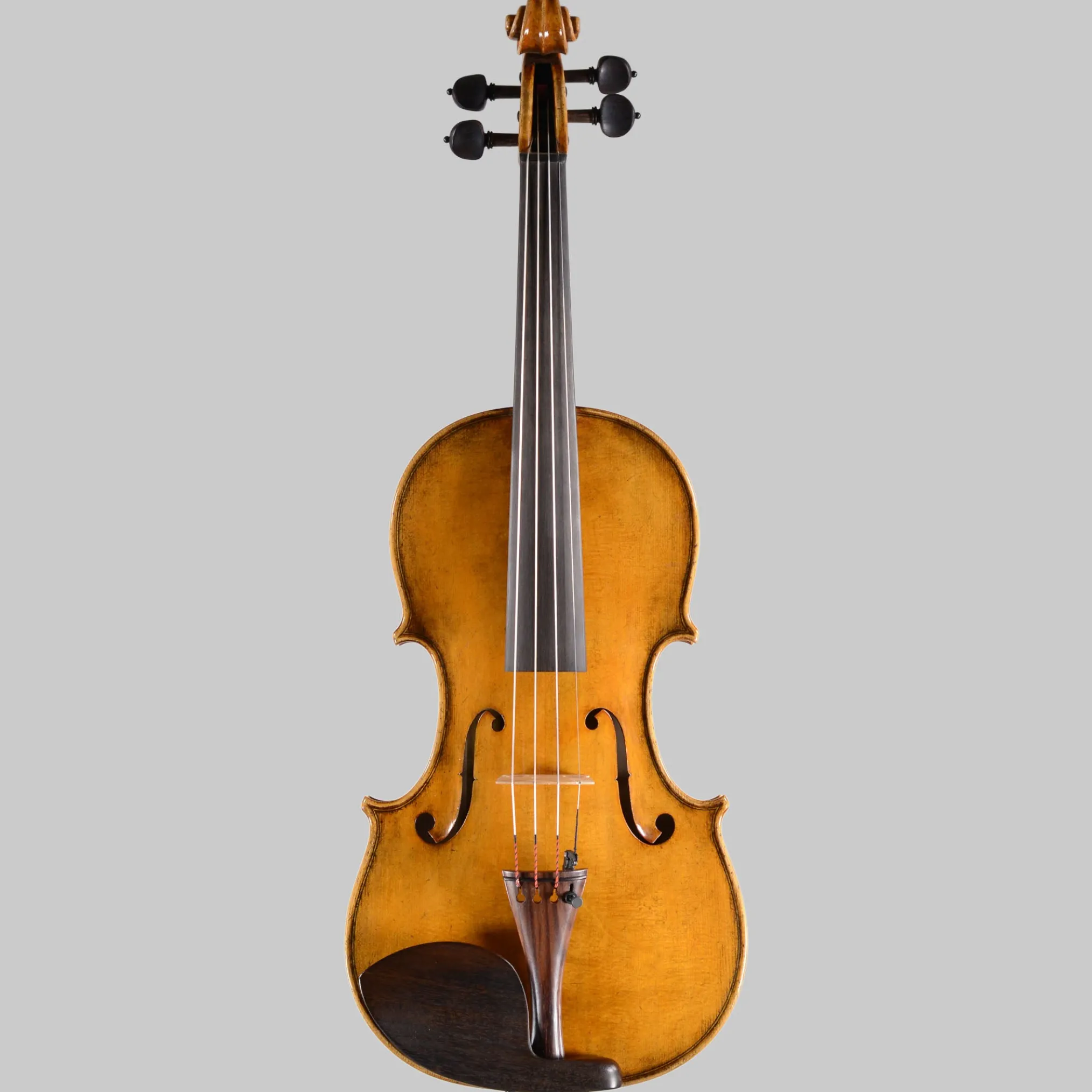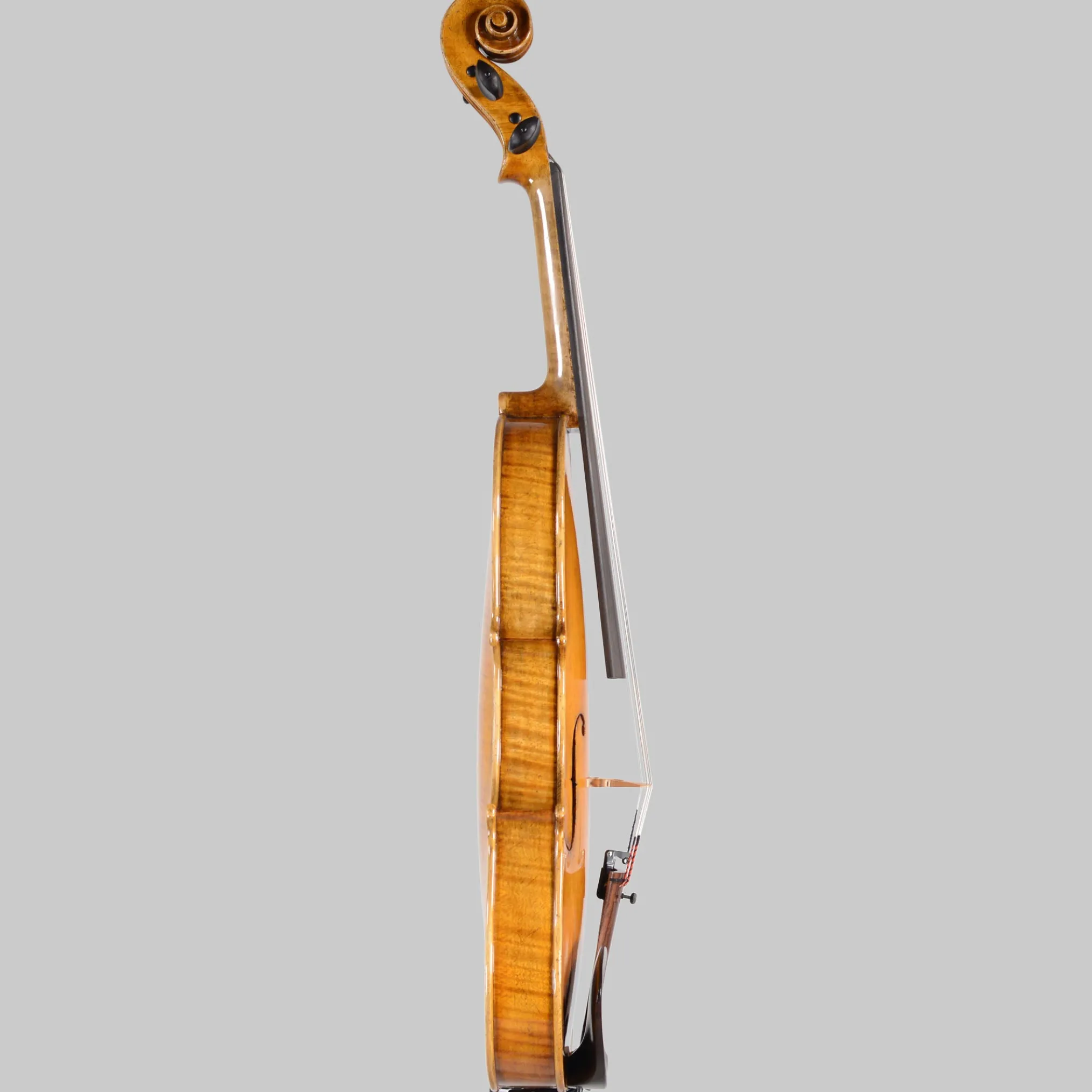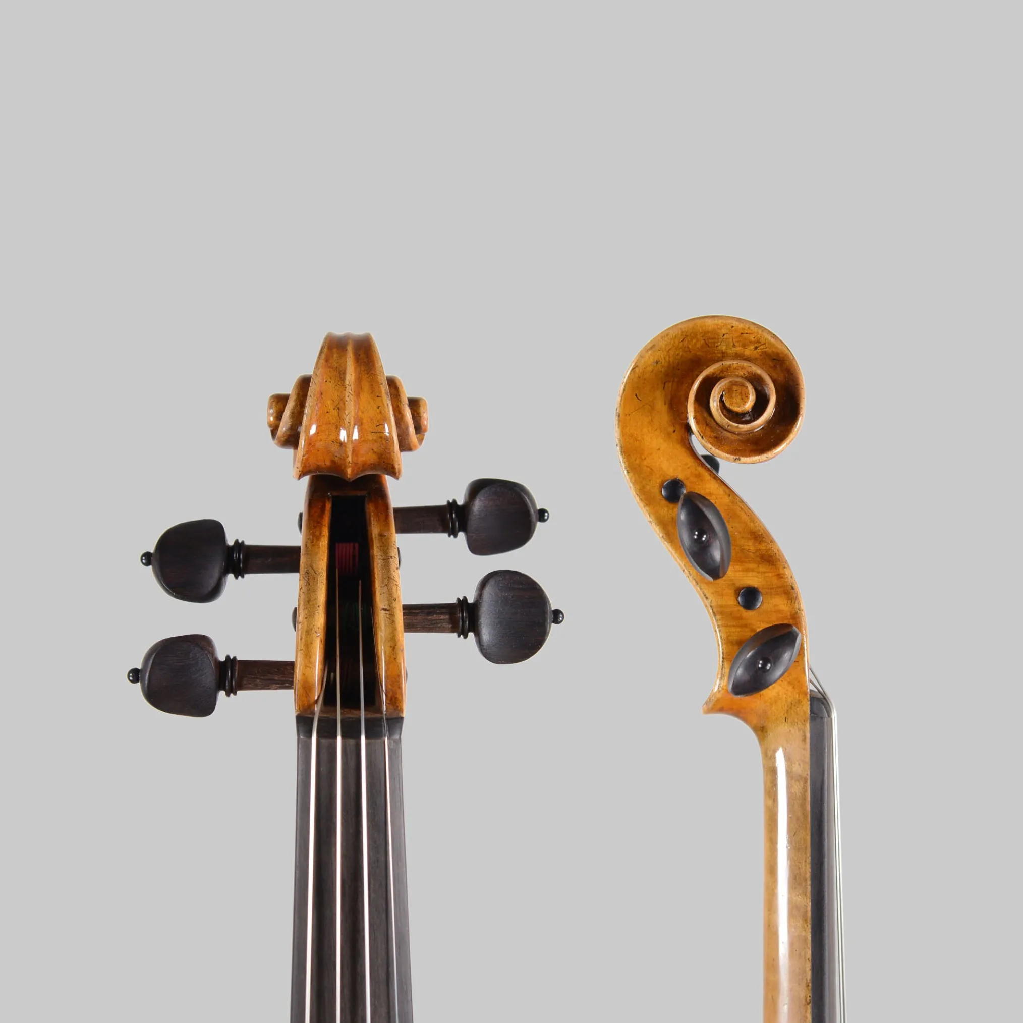 A fine violin made by Taras Andrash in 2024 using well-seasoned European tonewoods. This instrument features a golden yellow oil varnish with brown reflections and light antiquing. It was set up and adjusted by our master luthier, A.M. Bilva. The sound is clear, focused, and sweet with a quick response. This is the first of two violins from the same year.