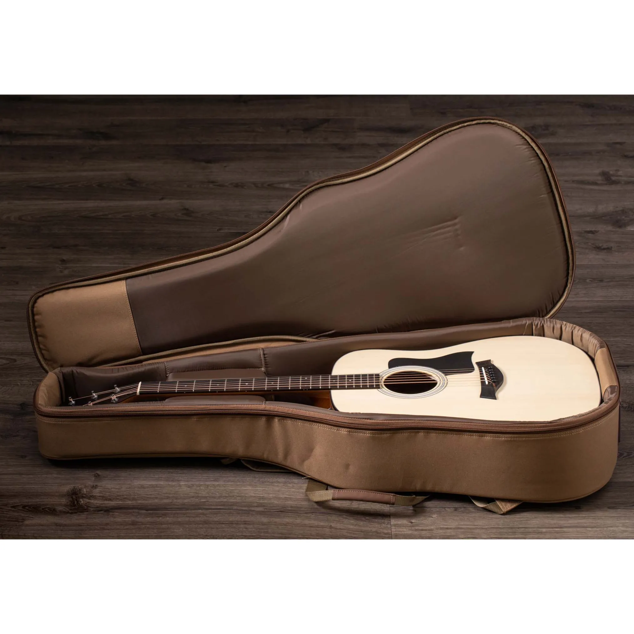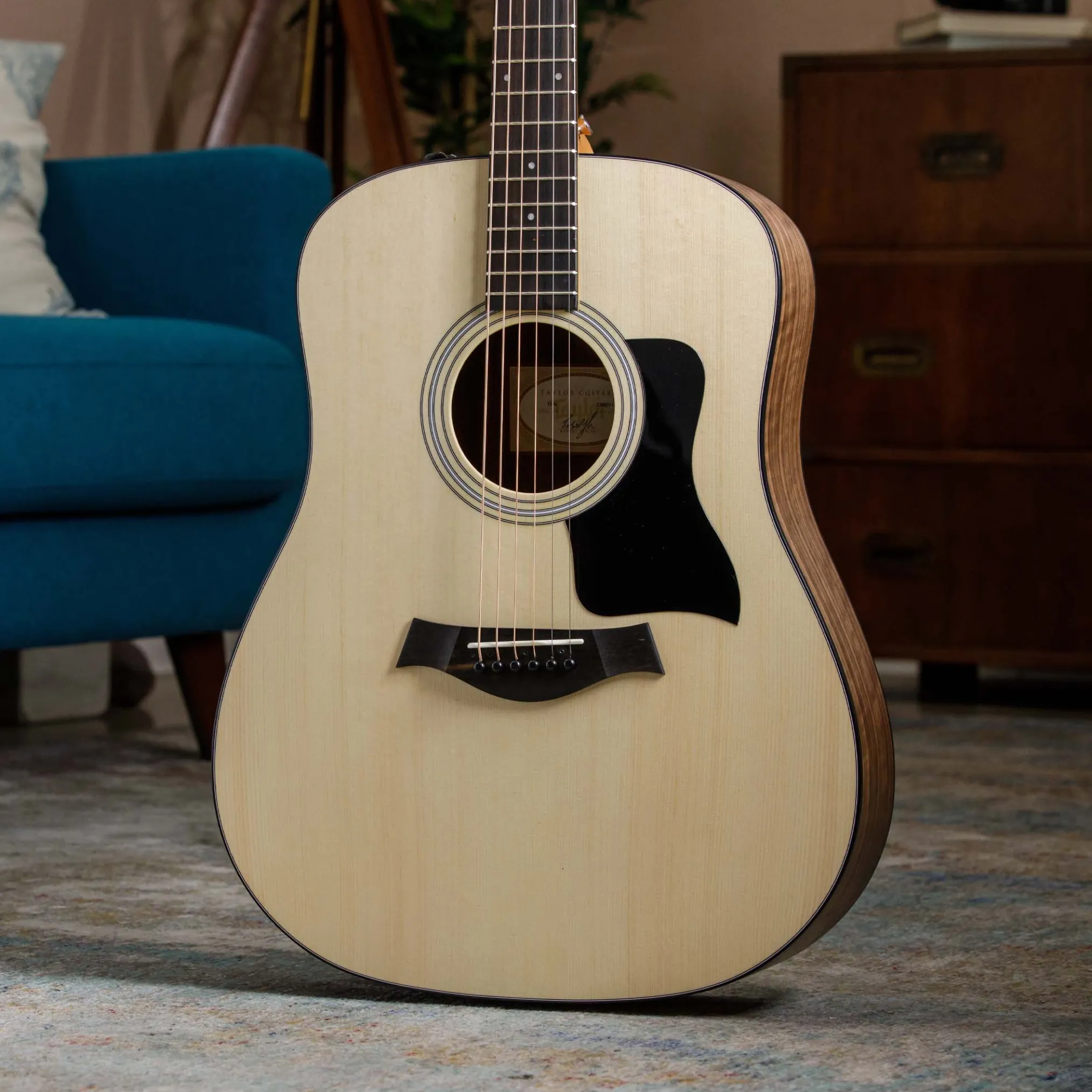 Perfect for new guitar players in need of an accommodating first guitar as well as experienced musicians in need of a reliable practice option, the Taylor 110e acoustic-electric guitar offers clear, versatile tone with a comfortable feel to match. With a solid top for maximum resonance and layered walnut back and sides, the 110e generates crisp highs and warm lows with a punchy midrange response, striking an ideal balance for strummers, flatpickers and fingerpickers alike. This non-cutaway Dreadnought includes our ES2 pickup and a lightweight gig bag.