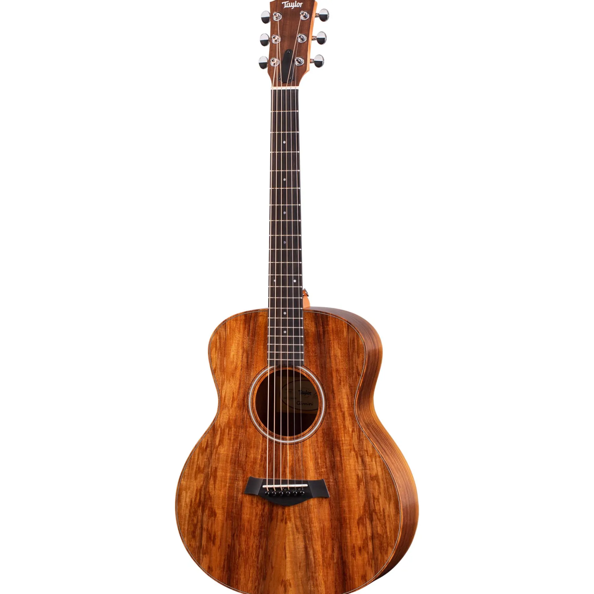 The GS Mini-e Koa brings the vibrant sound and organic beauty of Hawaiian koa to Taylor’s ultra-popular reduced-scale acoustic guitar. The GS Mini’s compact proportions make it a great choice for players who take their music on the road, and with a solid koa top, this model serves up a rich, bold sound that punches well above its weight for a smaller guitar. The built-in ES-B pickup offers clear, natural amplified tone and includes a digital tuner with an easy-to-read LED display. The GS Mini-e Koa ships with a structured gig bag.