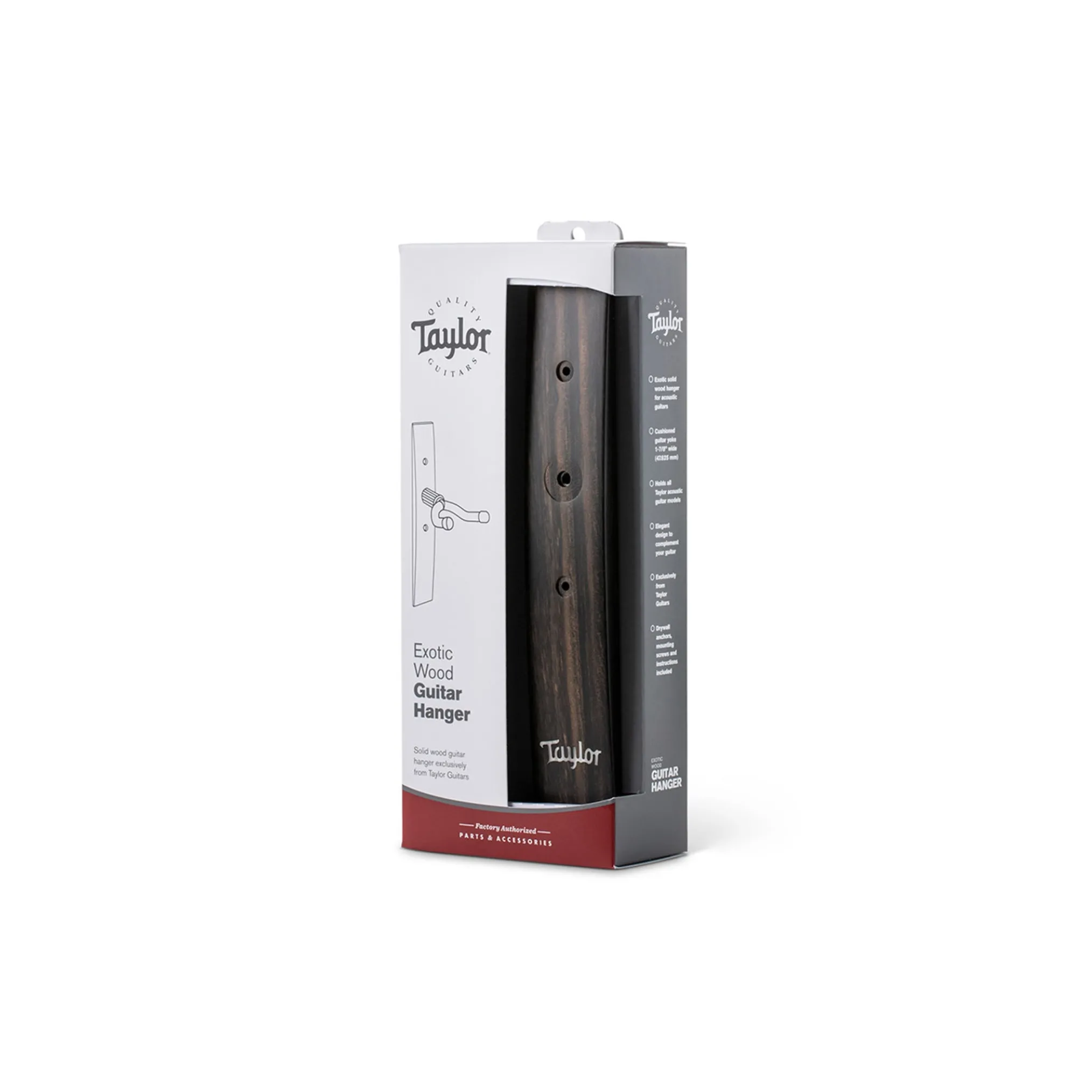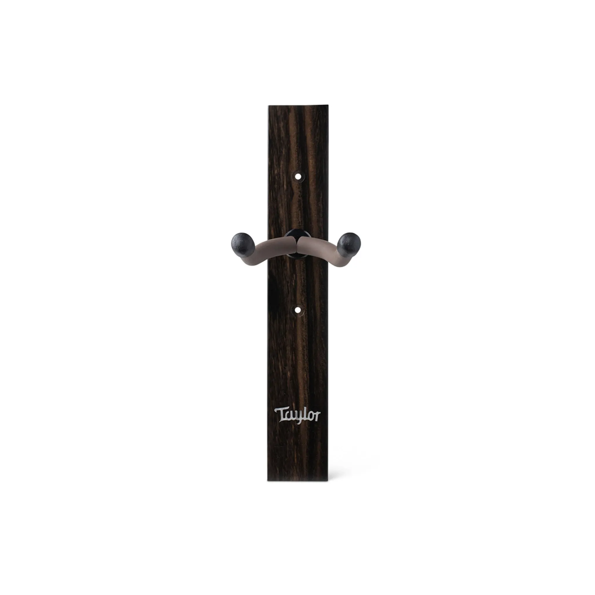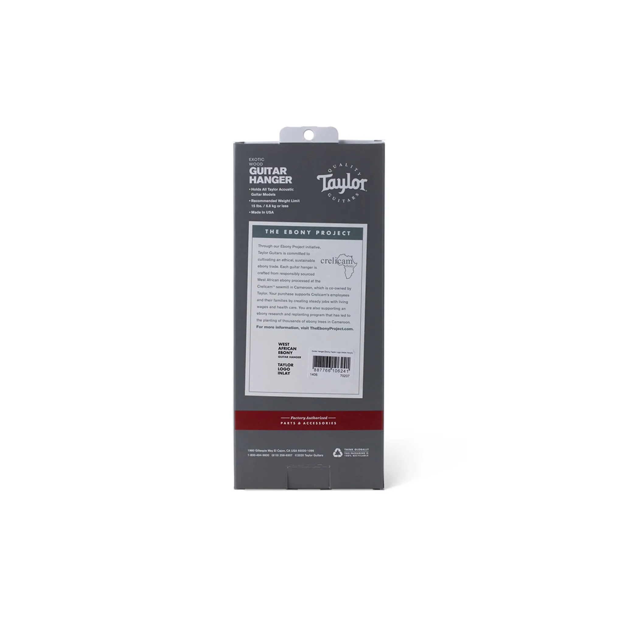 This finely crafted guitar wall hanger is made from genuine West African Crelicam ebony, the same ebony that we use in the fretboards and bridges of our acoustic guitars. A cushioned yoke provides a secure hanging spot for your guitar without damaging the finish or neck, while ebony’s gorgeous visual character reflects the craftsmanship and natural beauty of our responsibly sourced tonewoods. This model features an Taylor logo inlay design in Italian acrylic. Purchases support our tree planting projects and other sustainability initiatives. Each hanger is visually unique, displaying ebony’s exotic character in a distinctive color pattern. Each wall hanger features a 1-7/8″ x 11-3/8″ wood mount. Screws included. Model #70207.