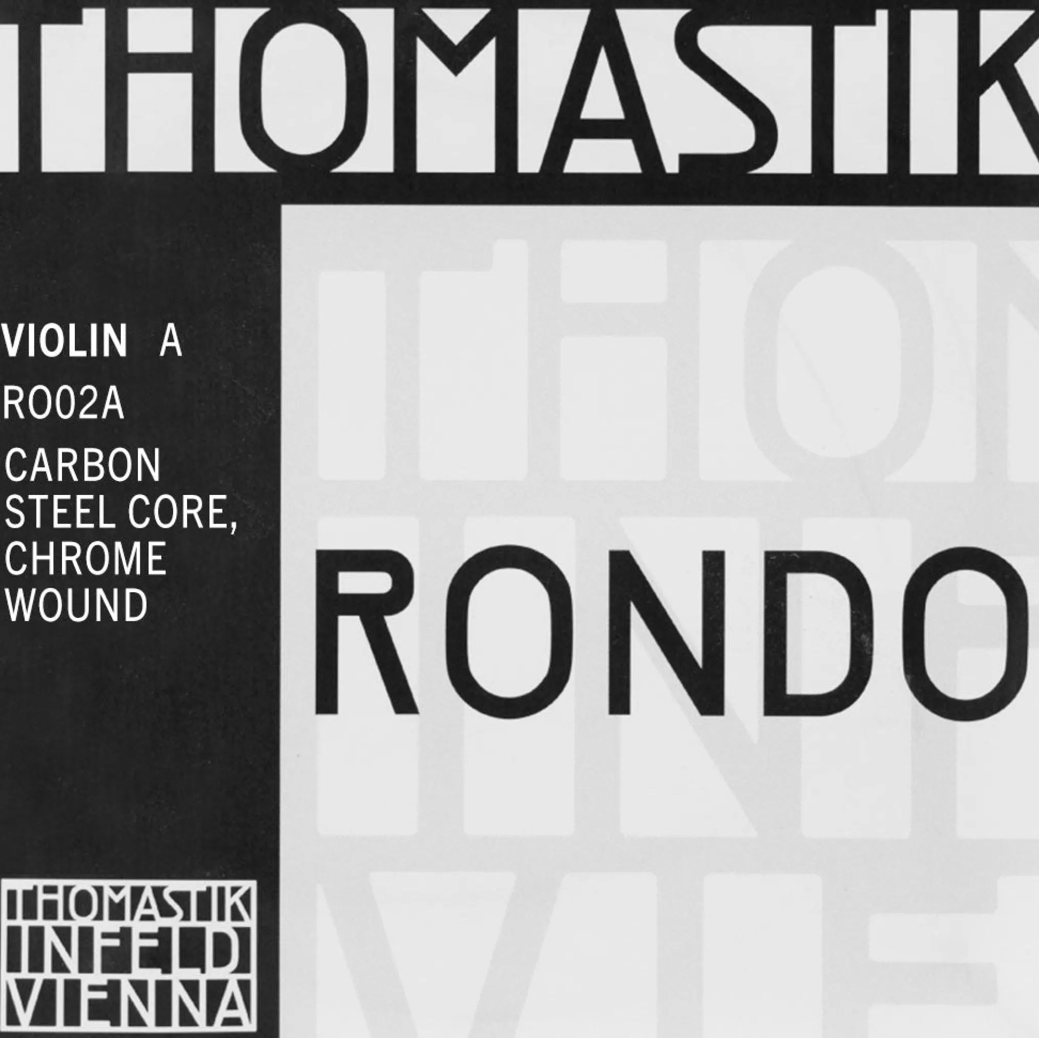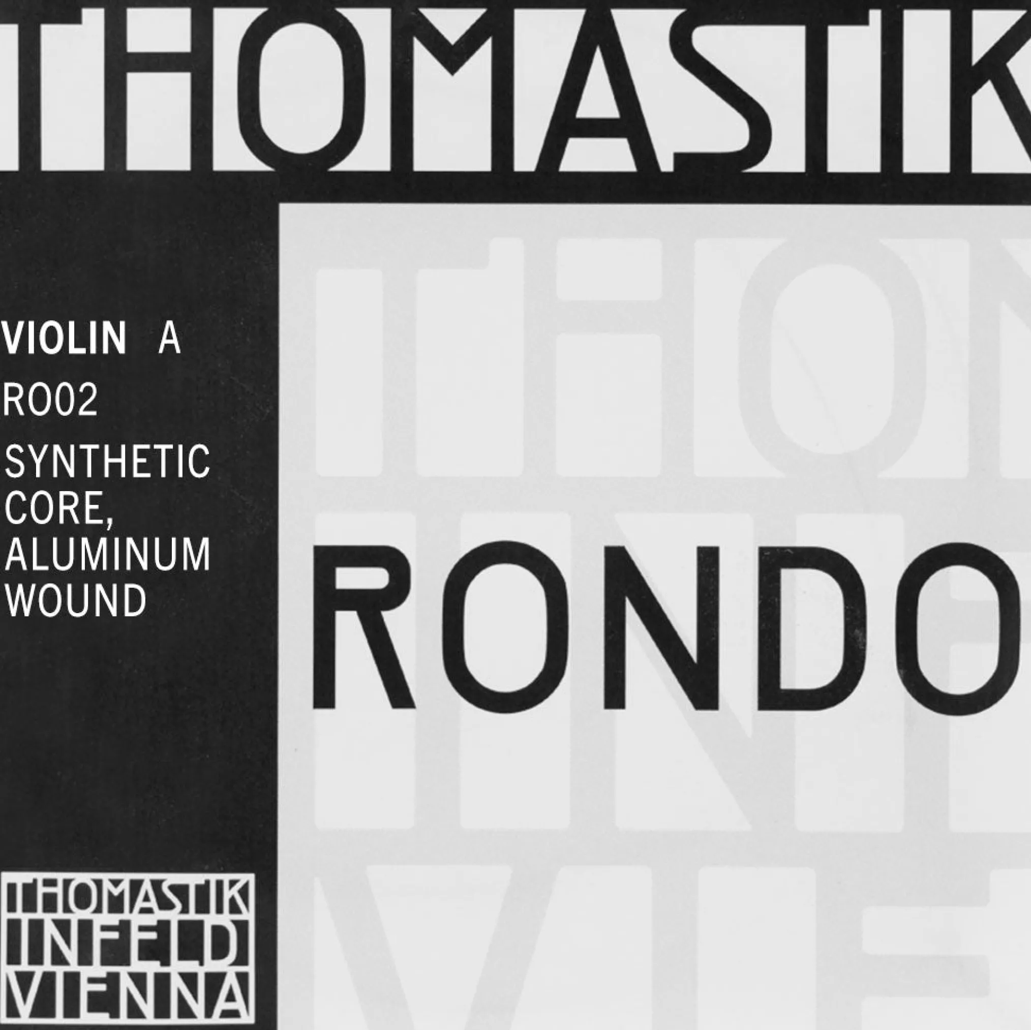 Rondo violin strings work on many different instruments but are particularly popular among soloists playing old instruments. The aluminum wound, synthetic core A-string provides great modulation and a rich spectrum of sound colors. Rondo also offers a steel core, chrome wound A-string for those wanting atraditional steelcore or who are looking for 100% corrosion resistance and easier playabilitywithout the common downsides of sounding too bright or shrill.