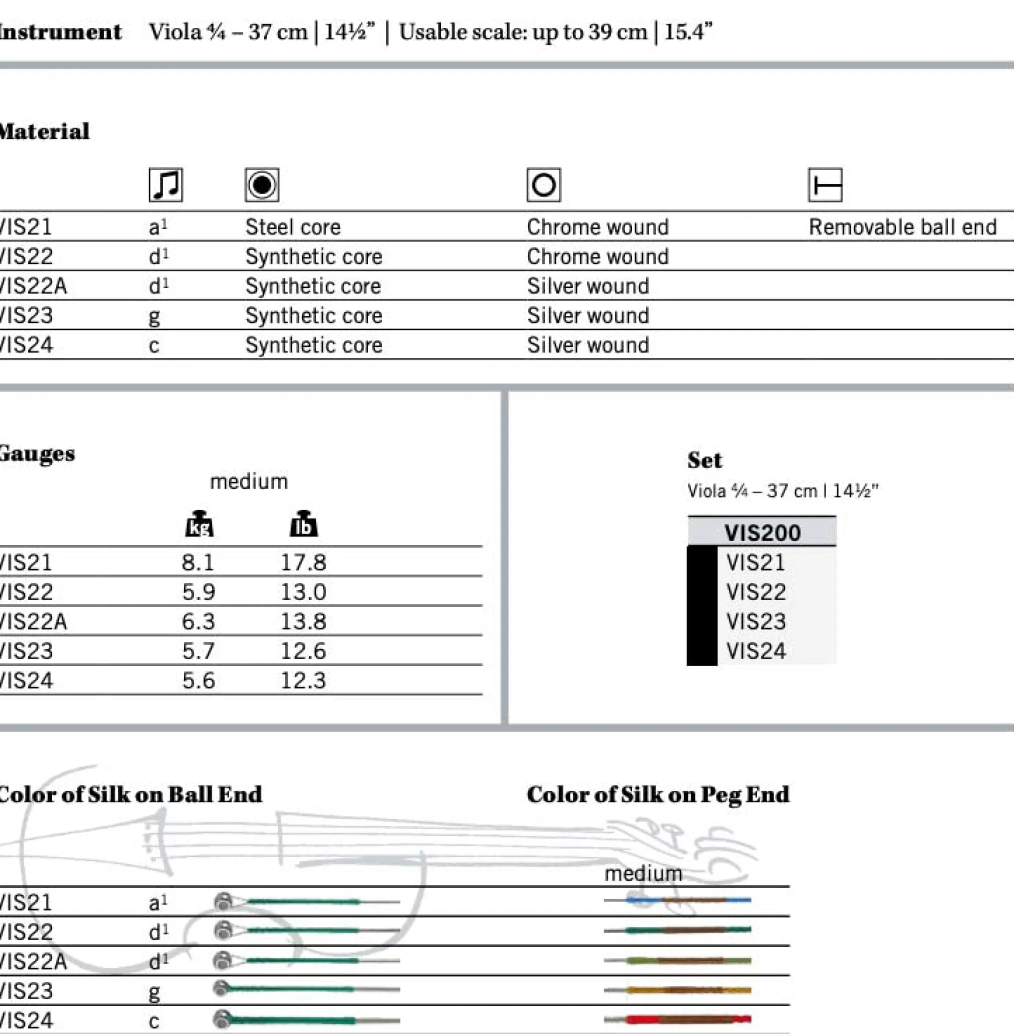 Vision Solo viola strings feature a technically advanced formulation and architecture designed to produce a blend of exceptional performance and playing characteristics. They offer great warmth with focus and clarity as well as energetic and intense projection. Using advanced synthetic core technology, they are easy to play and settle-in in just one to two hours. They offer unparalleled tuning stability, respond quickly and are more durable than most synthetic core strings.