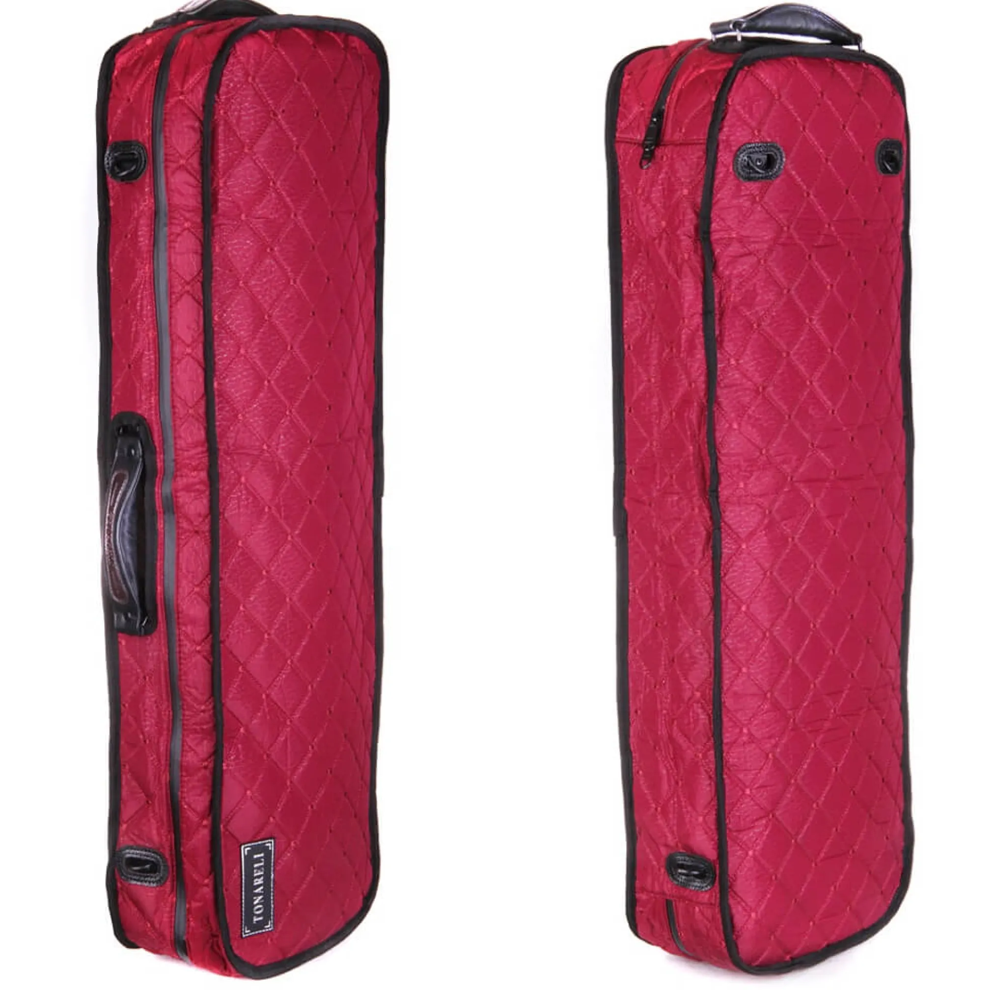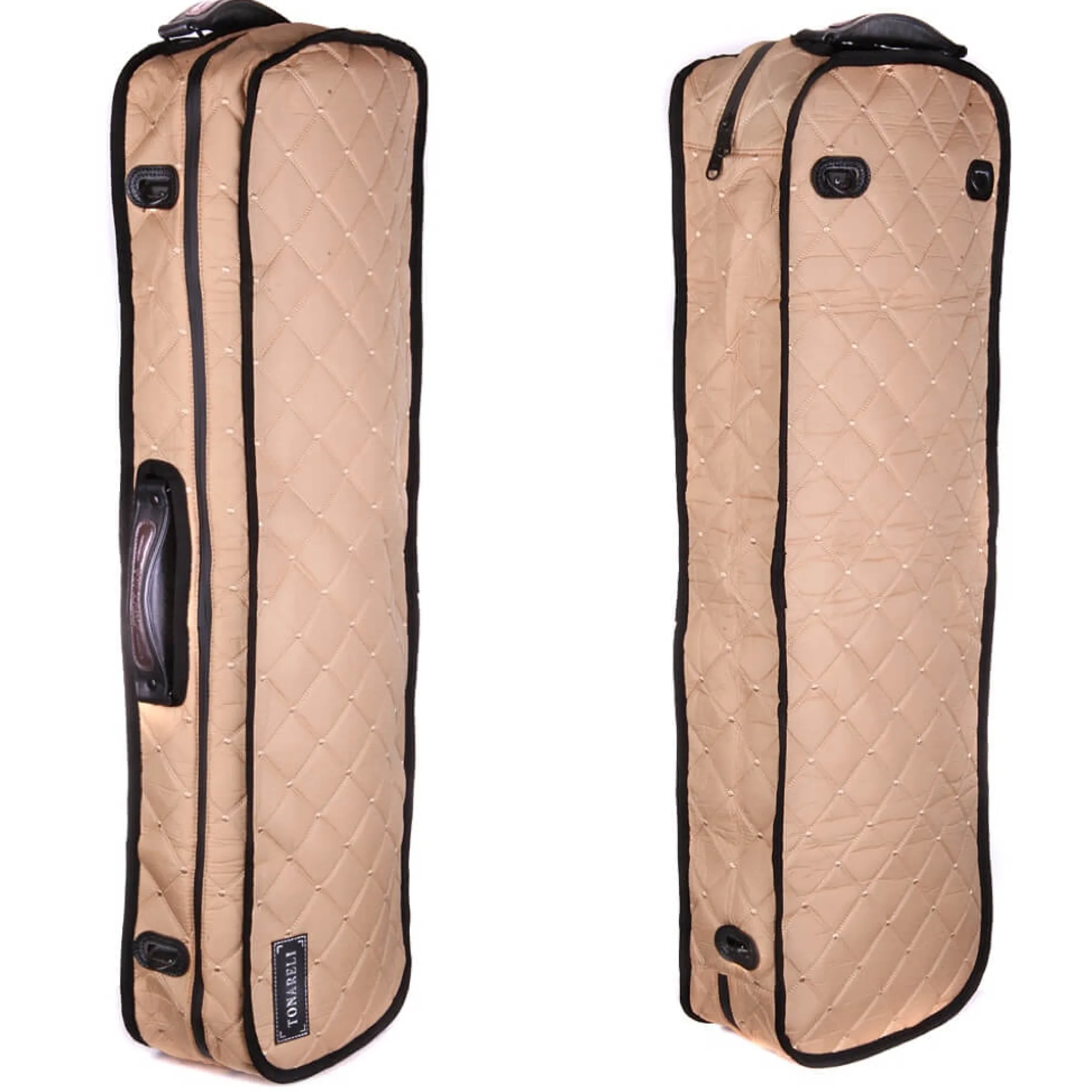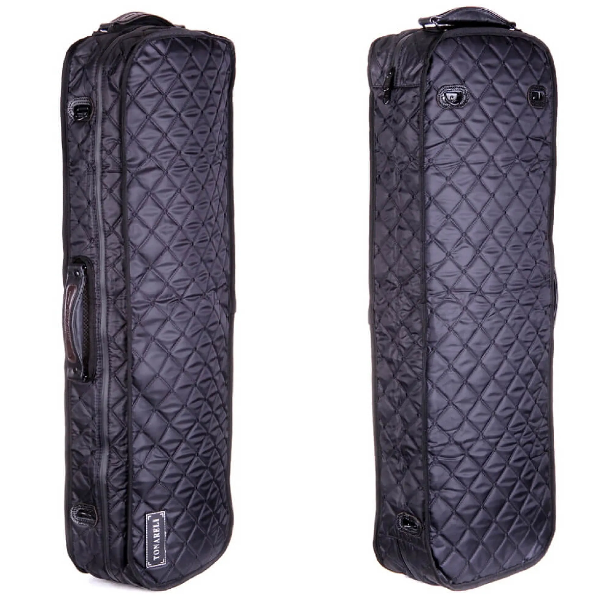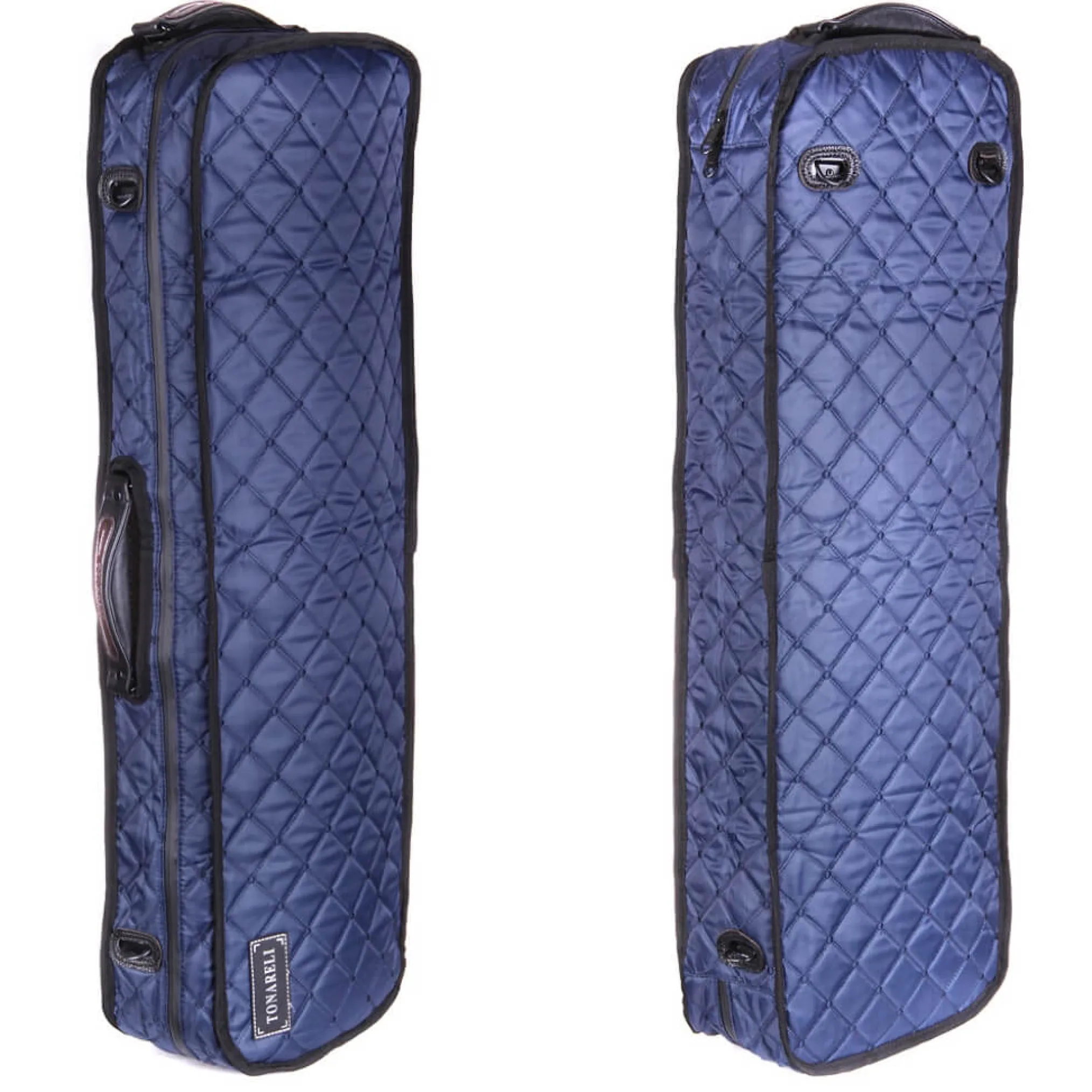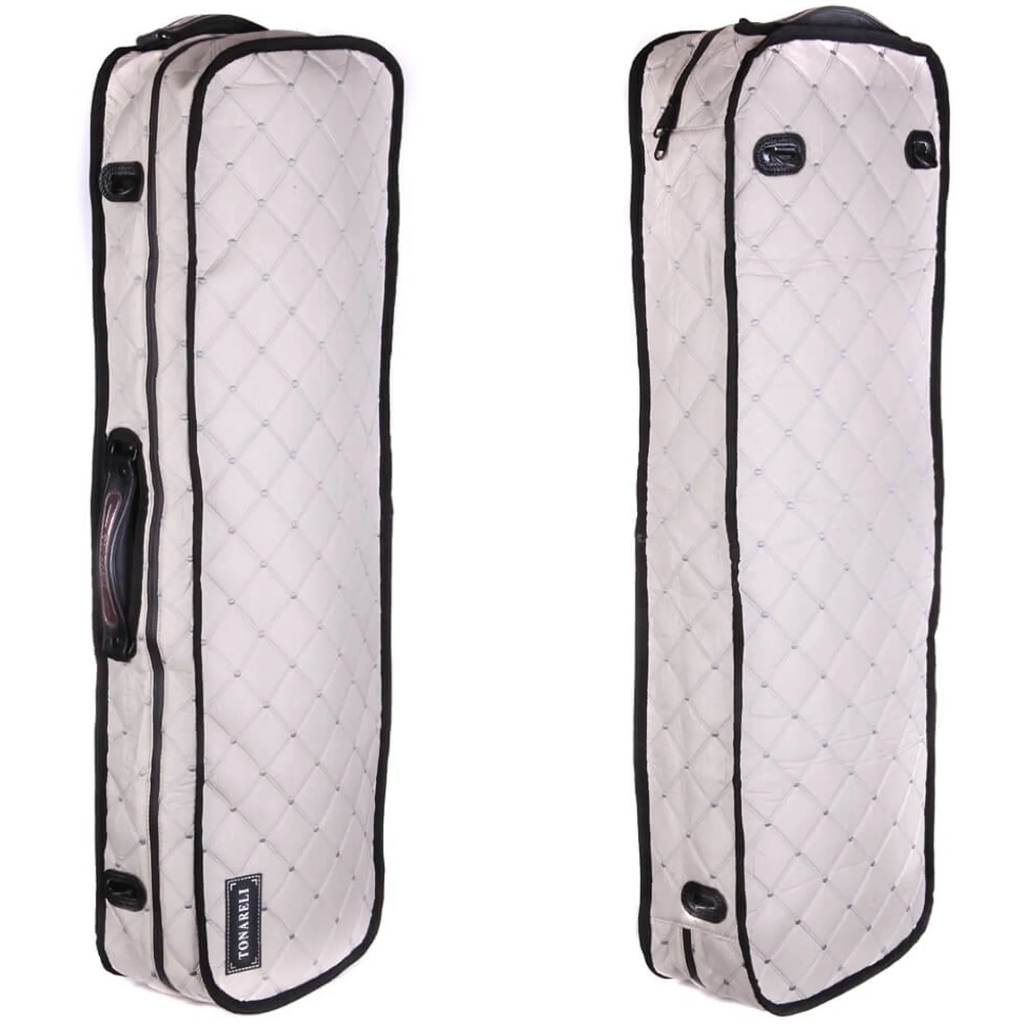 Tonareli case cover made specifically for the Tonareli VAFO series of oblong fiberglass viola cases. Made of water-resistant nylon and features a special water-resistant zipper. Has openings for all handles and D-rings so case can still be carried with straps when the cover is installed.