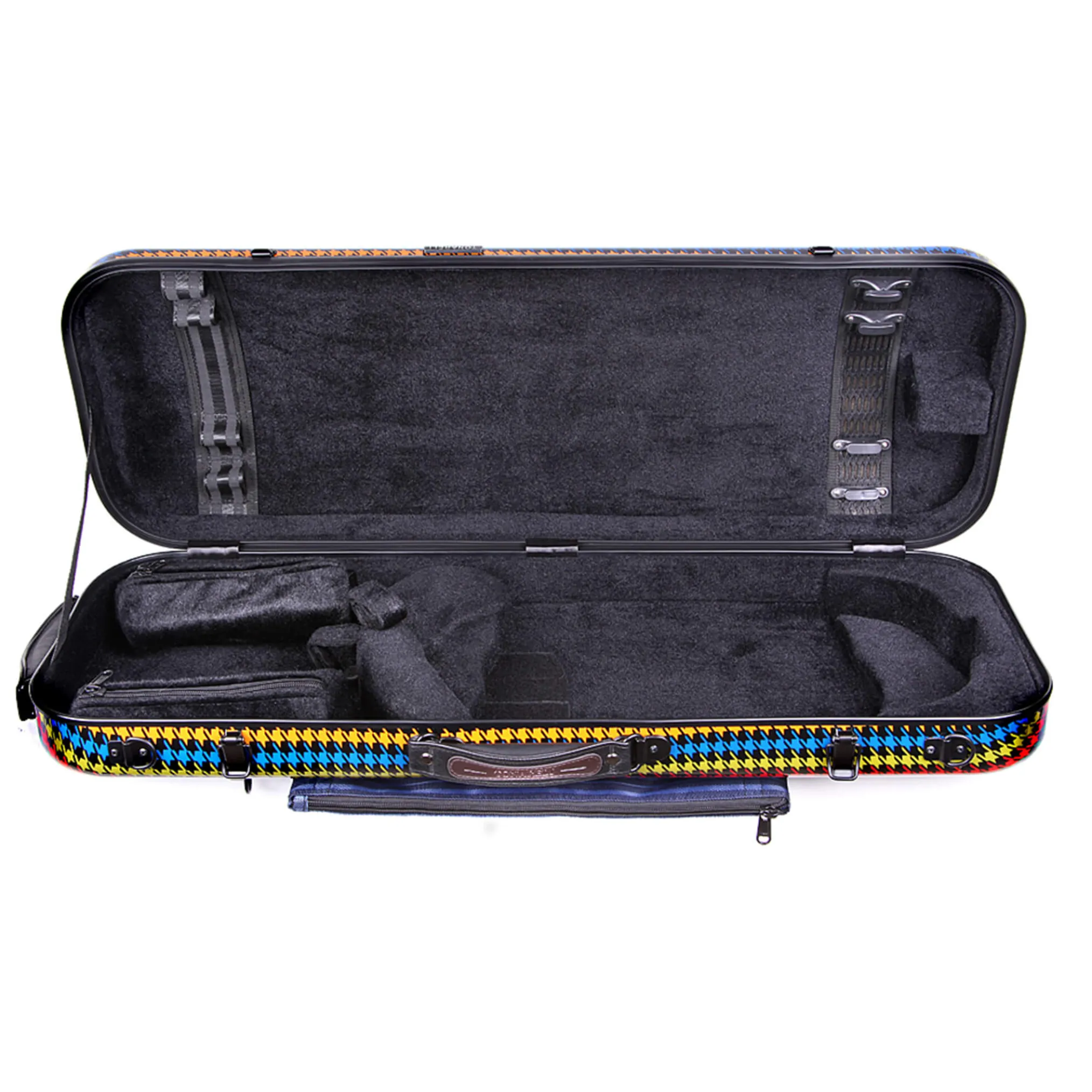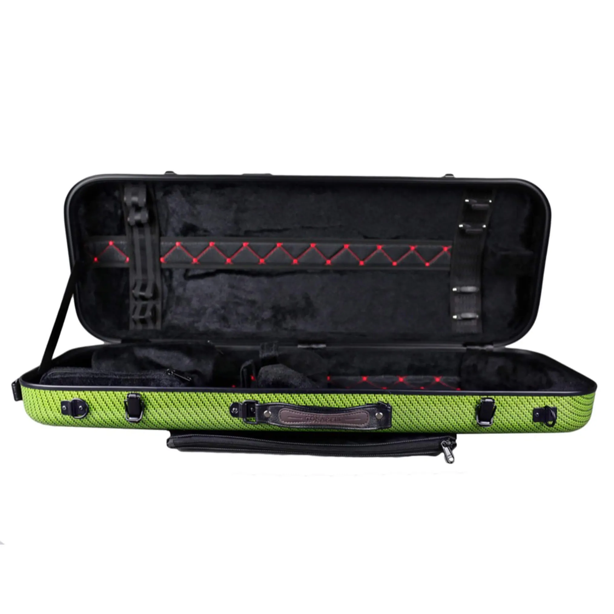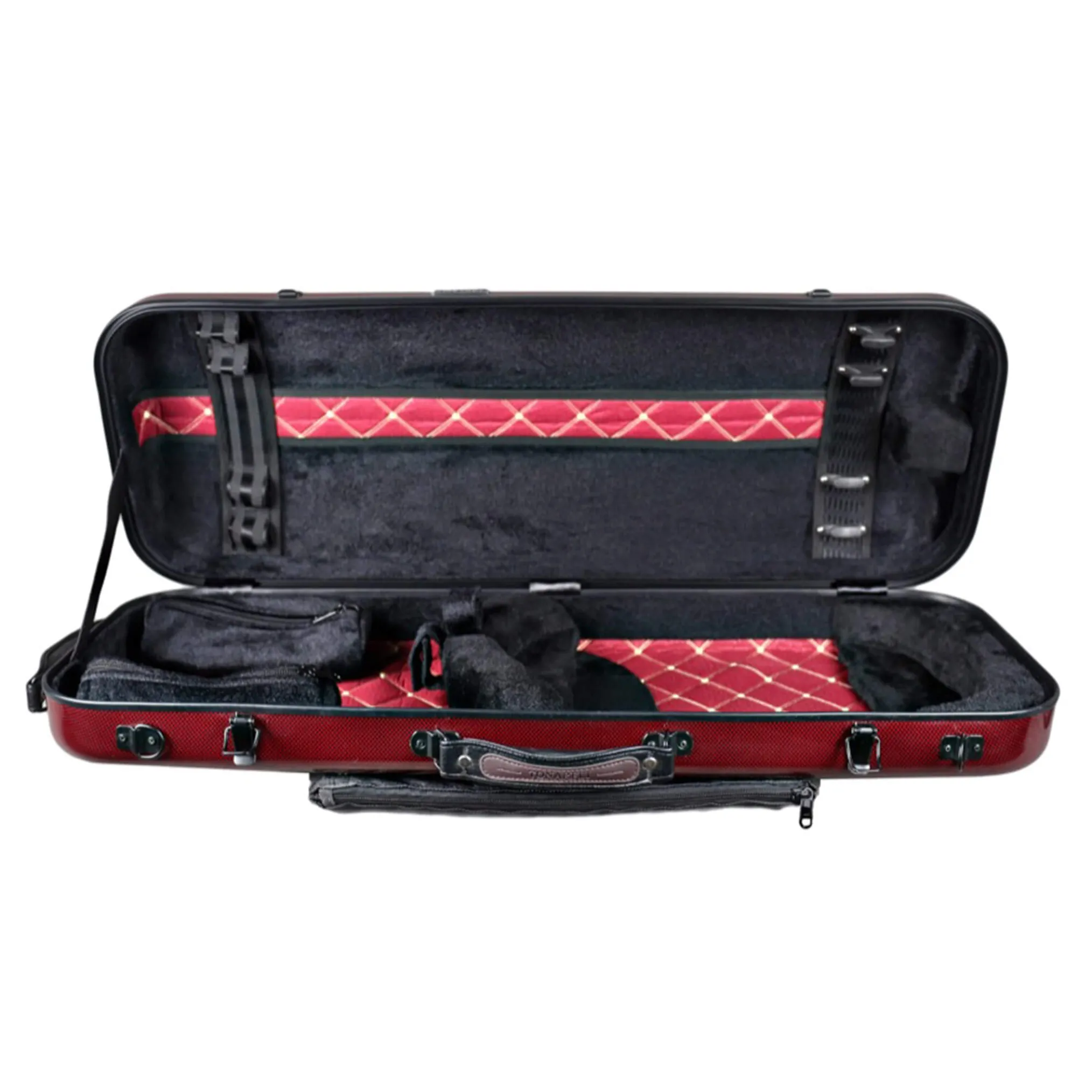 The case can safely secure four bows, and it includes two removable accessory pouches. The exterior design features specially padded grips that are comfortable and easy on your fingers. There are two padded shoulder straps with hooks and safety wires, which are much more secure than regular clips. A completely redesigned music bag with screw attachment that can be easily removed and re-attached to the case. This case is truly a work of art that not only protects your beloved instrument, but also meets the highest standards and various demands of violists.