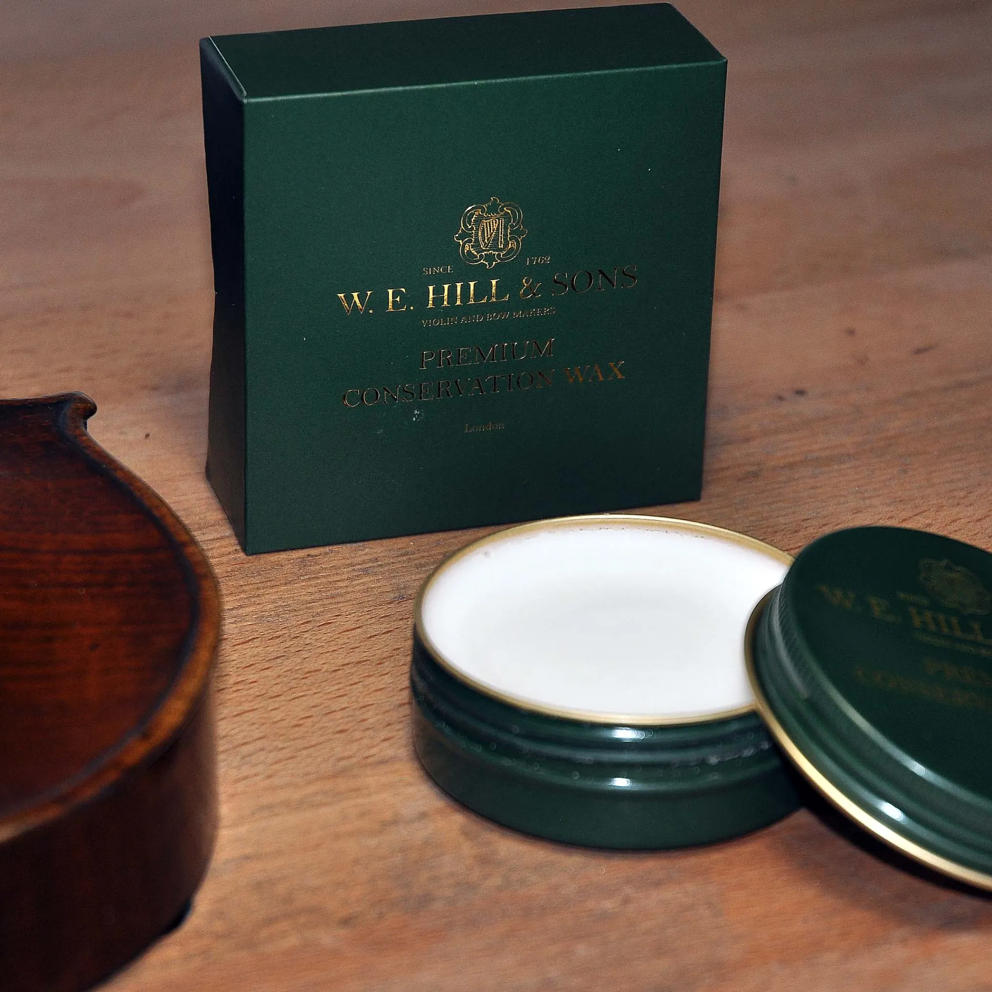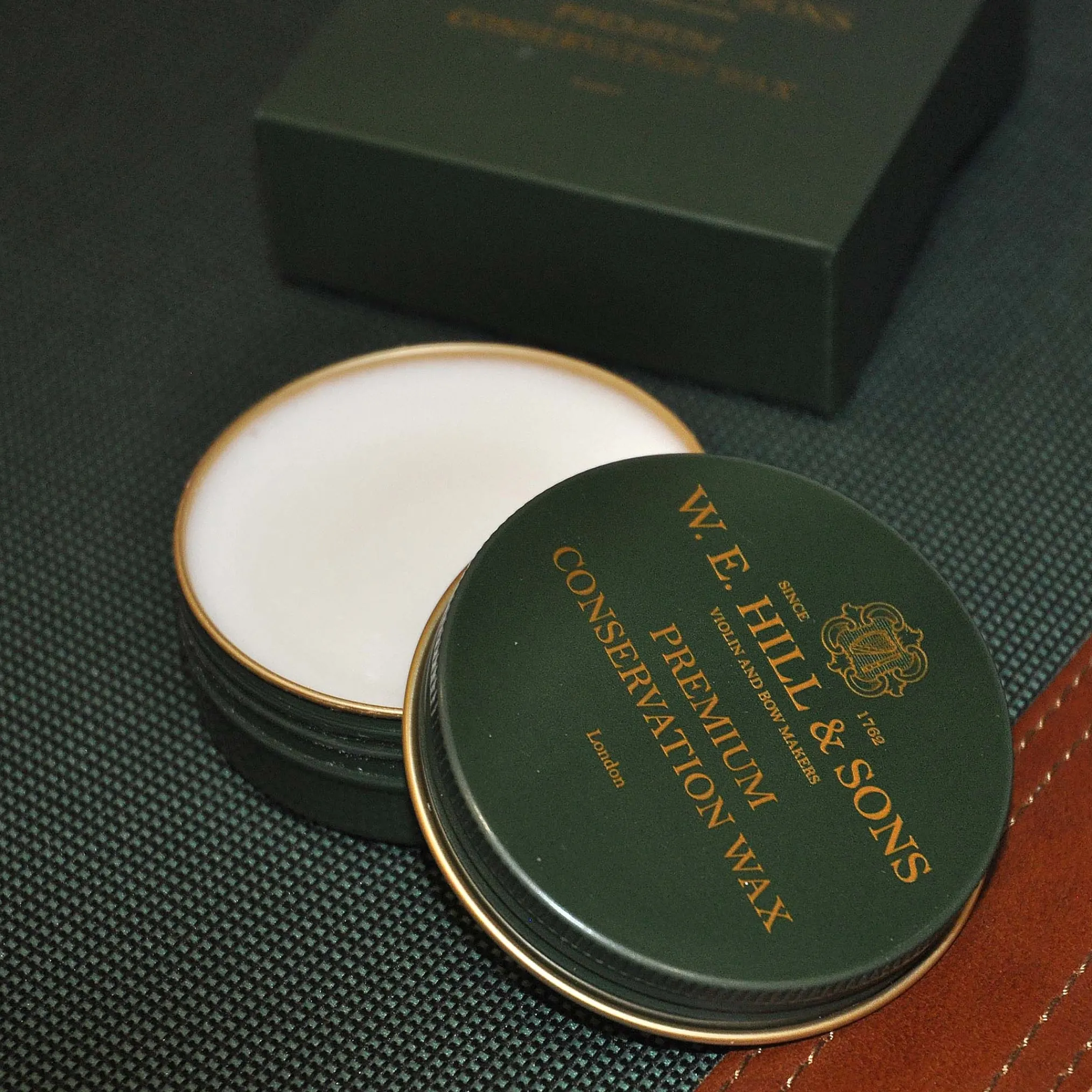 W.E. Hill & Sons’ Conservation Wax is a newly developed product designed specifically for the maintenance and preservation of fine stringed instruments and bows. It is made in the UK using a unique combination of microcrystalline waxes and citrus oils, and it has undergone extensive testing to ensure its effectiveness.