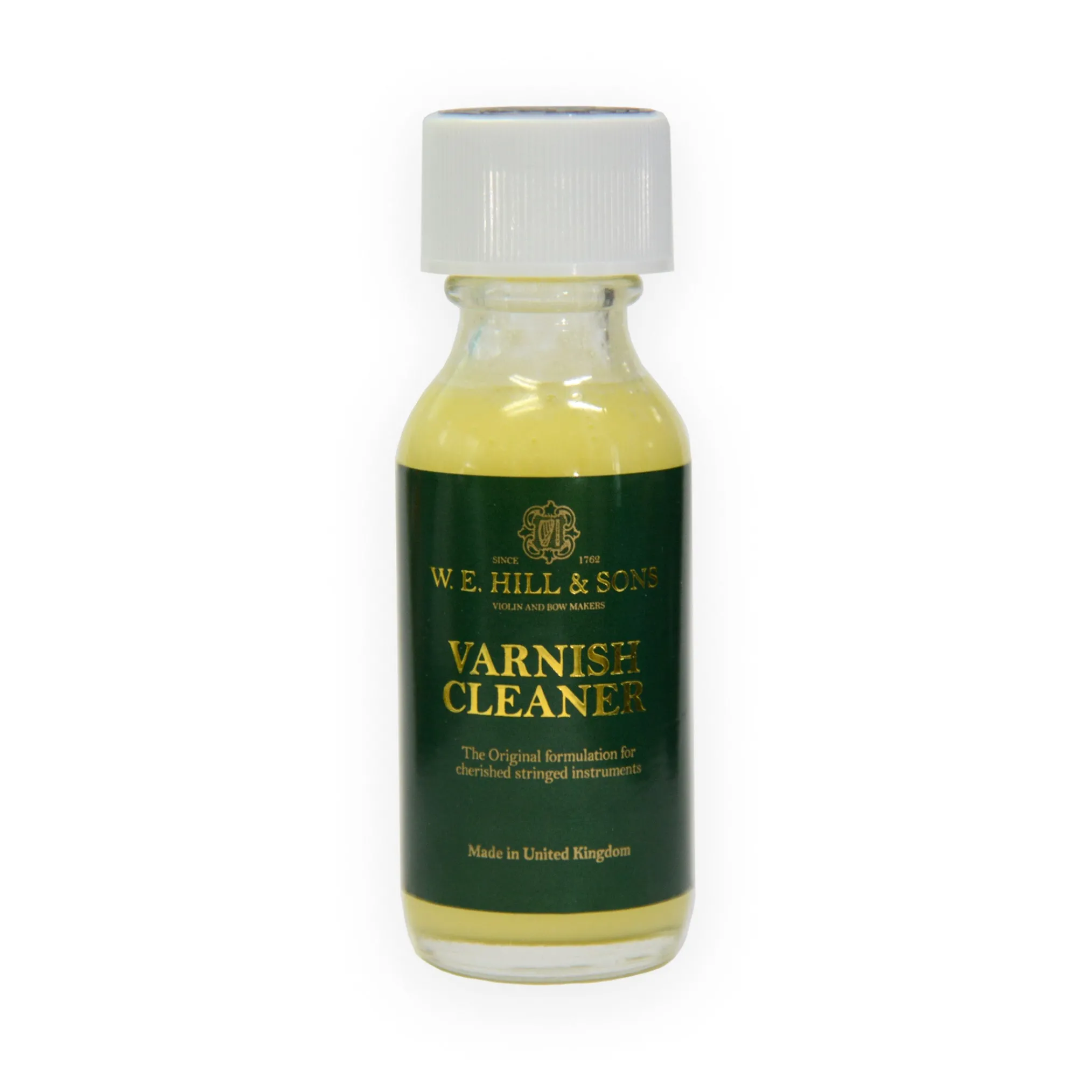 W.E. Hill& Sons Varnish Cleaner. The original formulation for cherished stringed instruments. Shake bottle and apply a small amount with apieceof absorbent material. Rub lightly with soft cloth until dry.