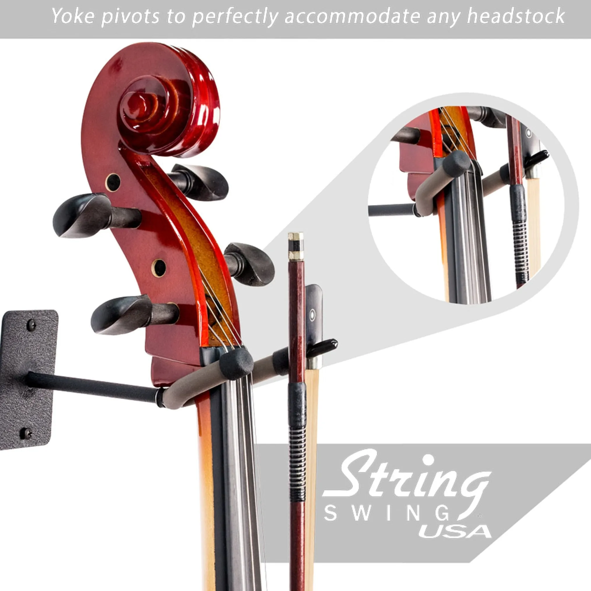 This wall-mounted Cello holder is designed specifically for the size, weight and headstock of cellos. Safely hang your cello in any room of your home where it can be appreciated and played at a moment’s notice.