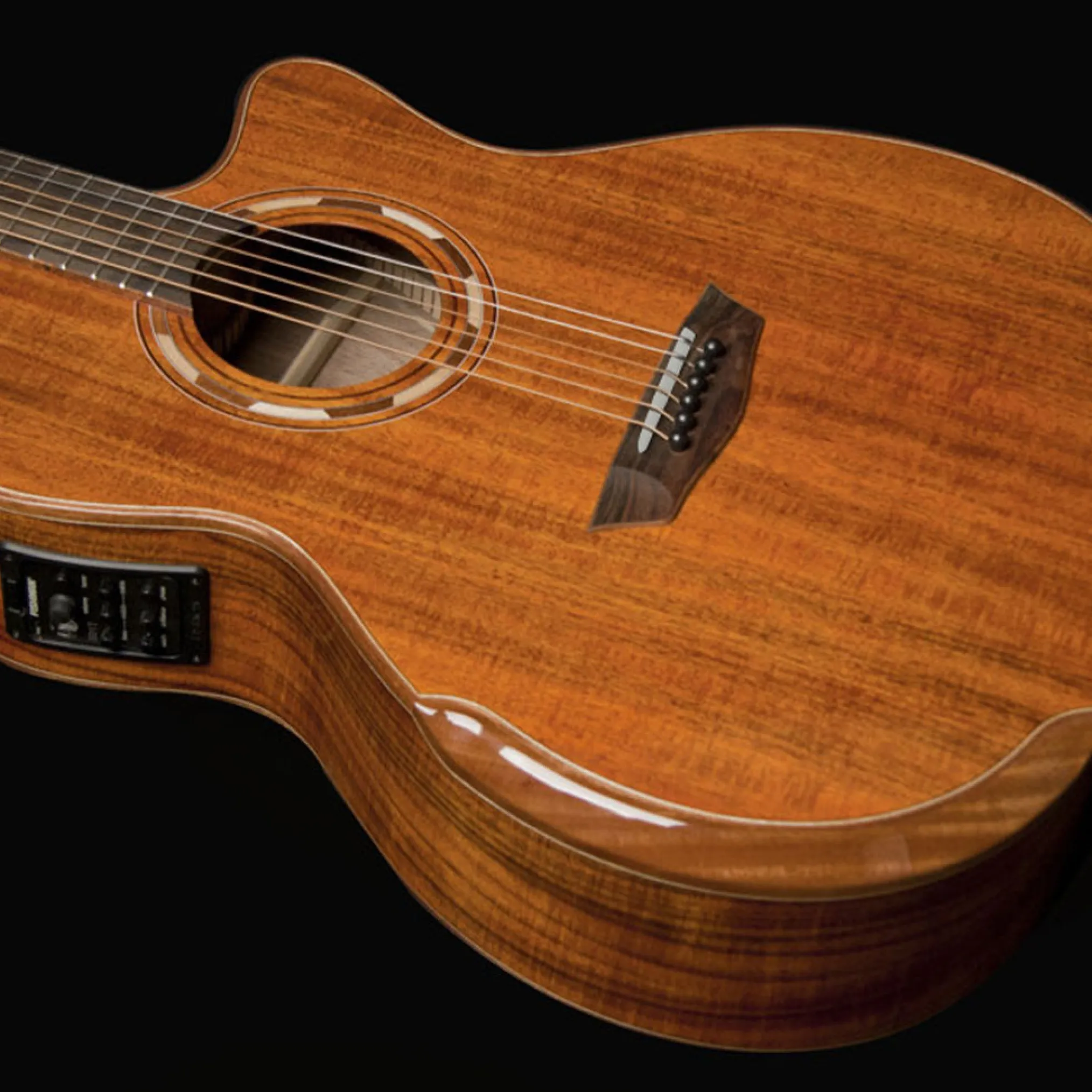 The Comfort G55CE Koa is a fantastic sounding acoustic guitar in its own right but the addition of premium Fishman electronics makes for an outstanding stage performance guitar. The Fishman® 501T Presys+ is an integrated tuner/preamp system for versatile amplified tonal shaping.