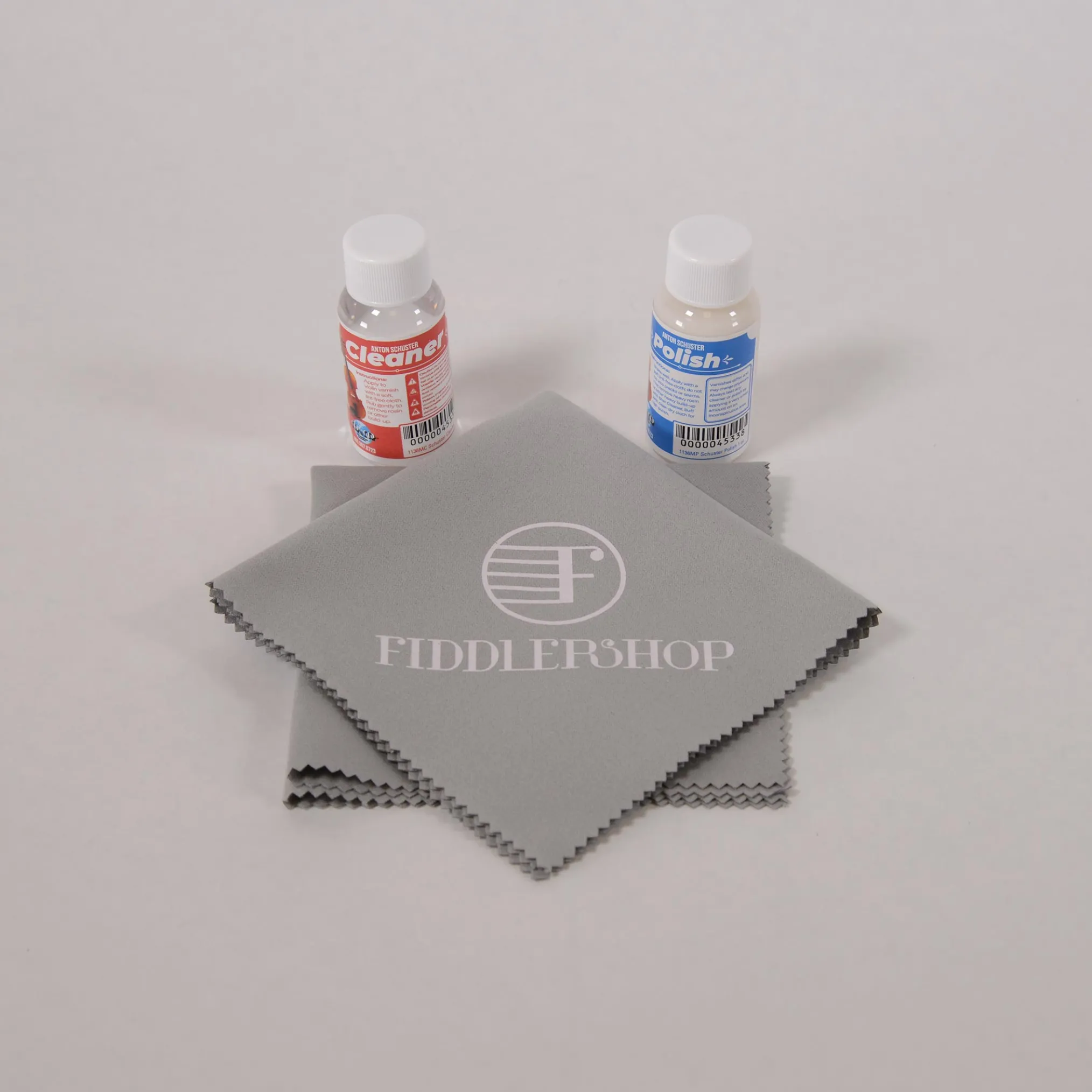 The first step is the cleaner, which removes years of rosin, grime and dust build up from the surface of your instrument. Use a clean micro fiber cloth included, and start with a small amount. Many performers are amazed at the results simply from this first step alone.